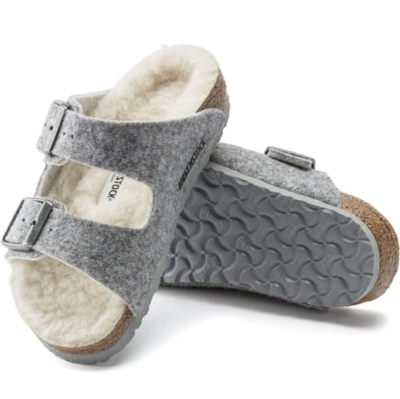The legendary two-strap design from BIRKENSTOCK – the Arizona, in a comfy wool version for kids. Iconic style complemented with the signature comfort of the BIRKENSTOCK footbed. This style is especially cozy with a wool lining, perfect for chilly days and nights. The adjustable straps provide a perfect fit for growing kids. The upper is made from soft, cozy wool felt and the footbed is fully lined in fluffy shearling wool.