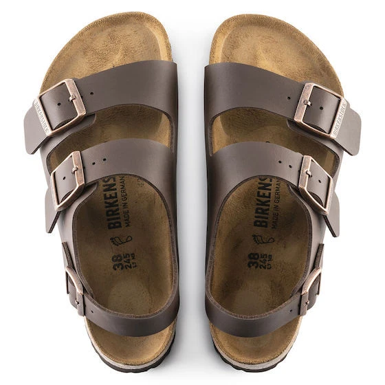 The BIRKENSTOCK Milano guarantees maximum grip and gives the feet stability in any movement scenario. This is thanks to the slightly more compact upper with two straps and the wide backstrap. The upper is made from the skin-friendly, hard-wearing synthetic material Birko-Flor®.