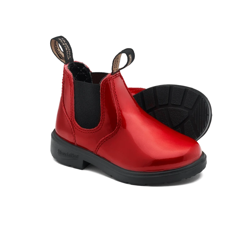 Blundstone Kidsβ boots #2253 in Red Patent puts a shine on a kidβs day. Red patent is a solid step up, playground-style wise. Perfect for dress-up.