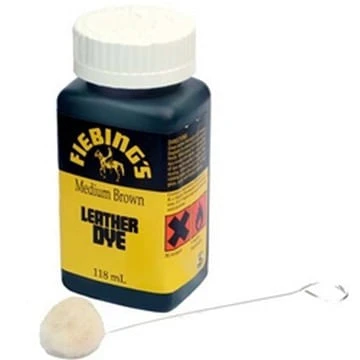 Clean leather thorougly with Fiebing’s DEGLAZER to remove all old polish and finish. Apply a coat of dye. A second coat may applied if required. After dyeing, remove excess surface dye by rubbing briskly with a soft cloth. For higher gloss, polish leather.Â