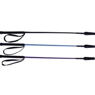 This riding crop is a great length for jumping or flat work. The grip is black rubber with a diamond pattern, the shaft is covered with braided nylon and the flapper is made of vinyl.Â