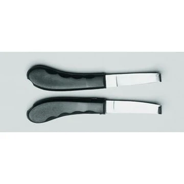 Handheld hoof knife with plastic handle. Available for left or right hands.