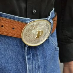 Montana Silversmiths Initial P Silver Engraved Gold Trim Western Belt Buckle (700P)