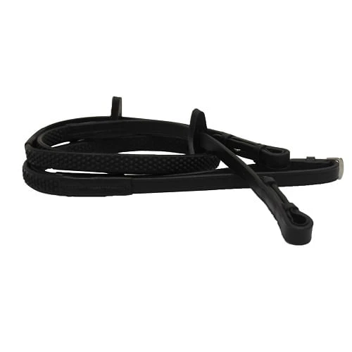 Quality Leather Reins with rubber grip made thinner & narrower to complement the Rambo® Competition Bridles.